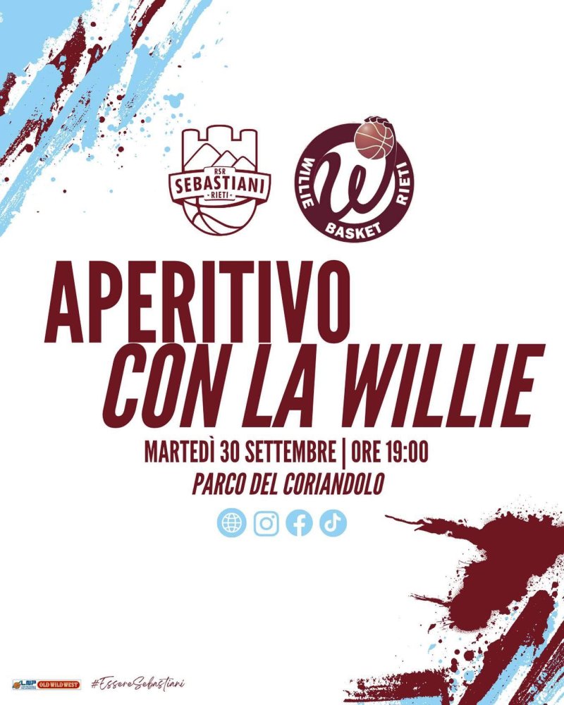 La RSR Sebastiani Rieti e la Willie Basket comunicano che domani, martedì 30 settembre alle ore 19:00, si terrà al Parco del Coriandolo un aperitivo con la prima squadra e lo staff tecnico della Sebastiani che incontreranno i ragazzi della Willie Basket Rieti.